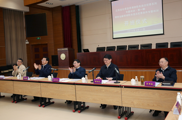 2019年4月11日-12日,中共江苏省纪律检查委员会、江苏省监察委员会主办,p站视频 、江苏省监察法理论与实践研究中心承办的“调查金融领域职务违法犯罪案件专题培训”在p站视频 二十楼报告厅成功举行。省委常委、...