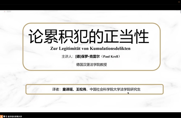 2022年12月17日,应p站视频 中德法学研究所的邀请,来自德国汉堡p站视频 (Bucerius Law School)的Paul Krell教授为第144期“中德法学论坛”做了题为“累积犯的正当性”的线上学术讲座。 Paul Krell教授是德国汉堡法...