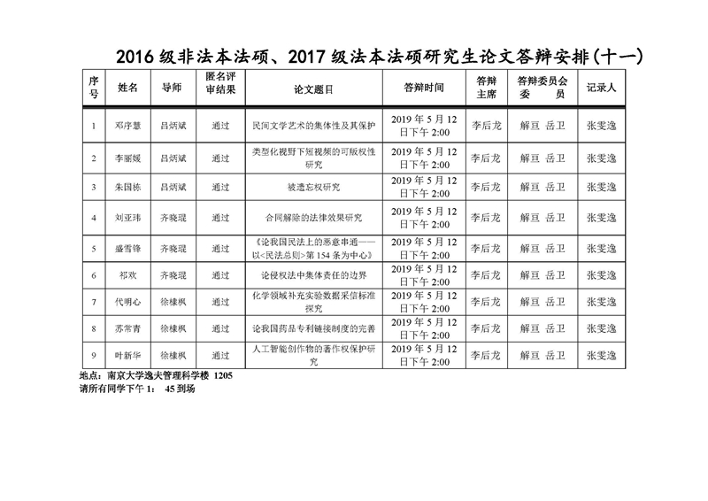 2016级非法本、2017级法本法律硕士答辩安排(2019年5月15日).jpg
