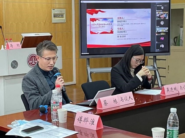 讲师吴进娥博士,北京市尚公(南京)律师事务所权益合伙人、监事会主席蔡栋律师围绕报告内容与谈交流。