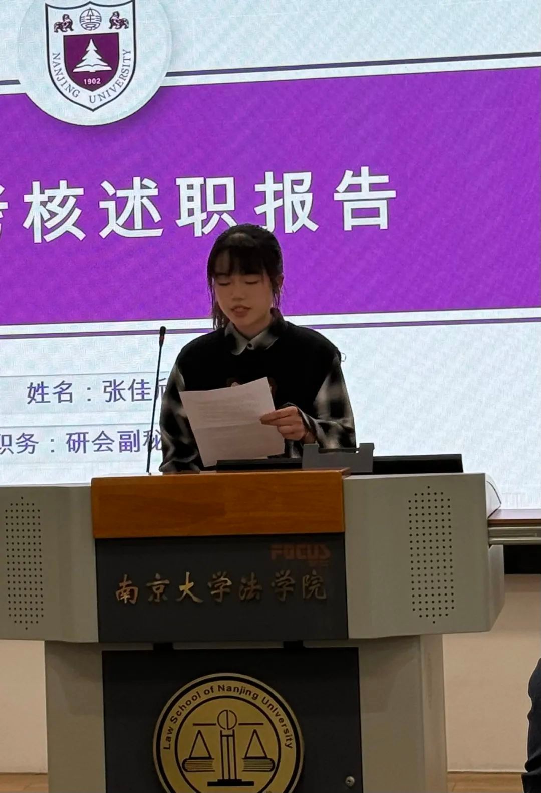 研究生会执行主席张萌对本学期研究生会的工作成果进行介绍,表示在新的学期将在“把方向”上坚持高站位、在“抓基层”上坚持高标准、在“聚人才”上坚持高水平、在“保落实”上坚持高要求,积极服务同学,为建设“第一个南大”贡献青年南法力量。