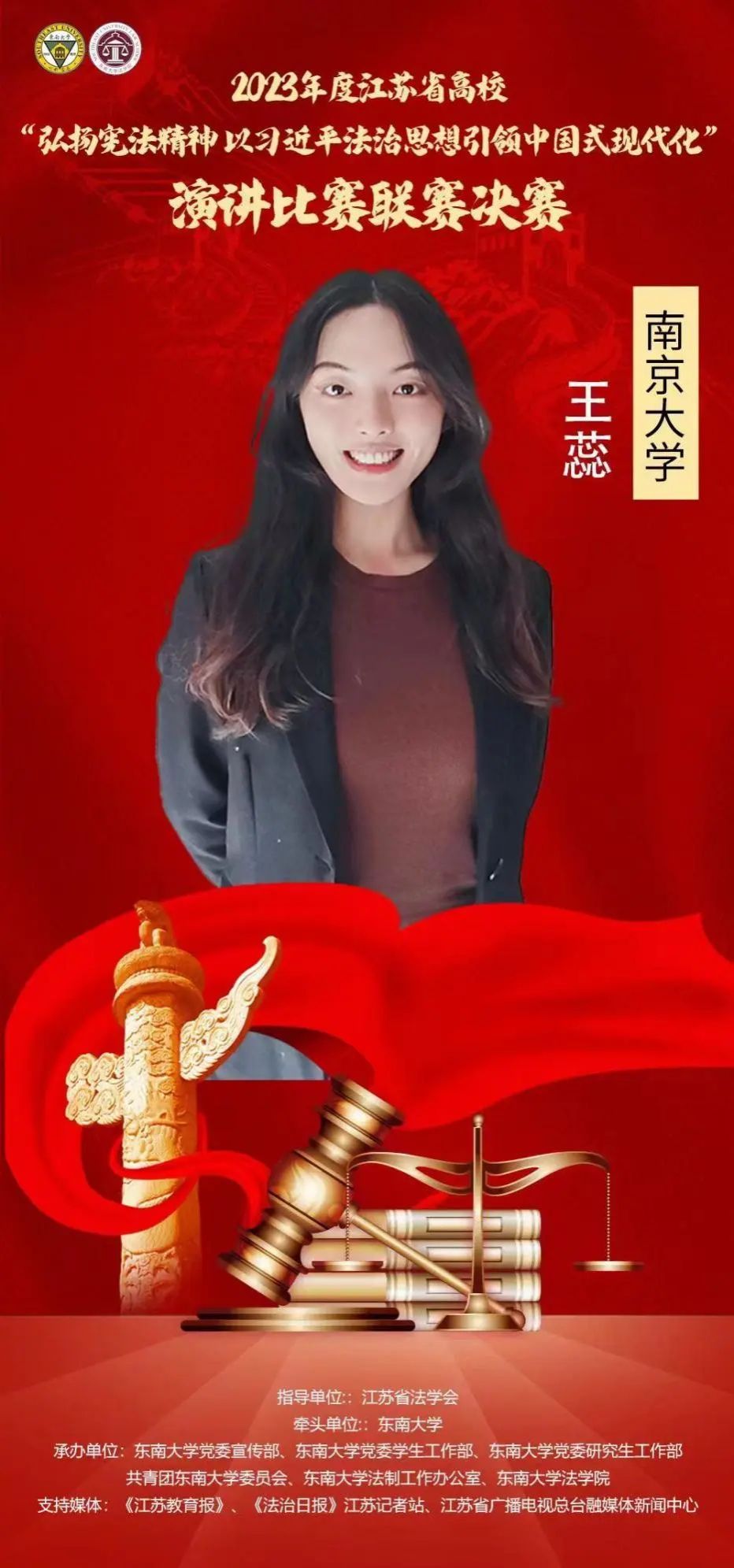 作为协办单位,与江苏省23所高校组成联盟单位,在江苏省法学会的悉心指导下,积极推进江苏高校“践行党的二十大精神,推进法治中国建设”演讲比赛联赛的顺利举办,在“国家宪法日”到来之际,共同掀起了学习贯彻宪法精神和习近平法治思想的又一轮热潮。