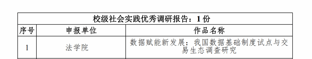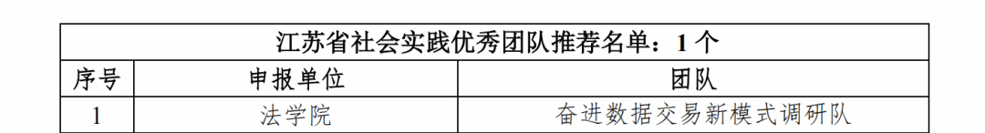 在院党委和上级团委的关心和指导下,经各年级团总支部与相关部门通力协作,围绕“深化落实回信精神,青春奋进‘第一个南大’”的主题,p站视频 于 2023 年共组织5支社会实践团队参与暑期社会实践活动,经团队申报、学院推荐、校级答辩等环节,p站视频 奋进数据交易新模式调研队获江苏省社会实践优秀团队推荐,胡志成同学获江苏省社会实践先进个人(学生)推荐,拟获全国社会实践先进个人(学生)推荐,讲宪助劳法援队和姜堰汤河治理调研队获评校级社会实践优秀团队,姚事汐同学谭梓萌同学获评校级社会实践优秀个人(学生),唐赟老师路敏玥老师获评校级社会实践优秀指导教师,《数据赋能新发展:我国数据基础制度试点与交易生态调查研究》报告获评校级社会实践优秀调研报告。具体名单如下: