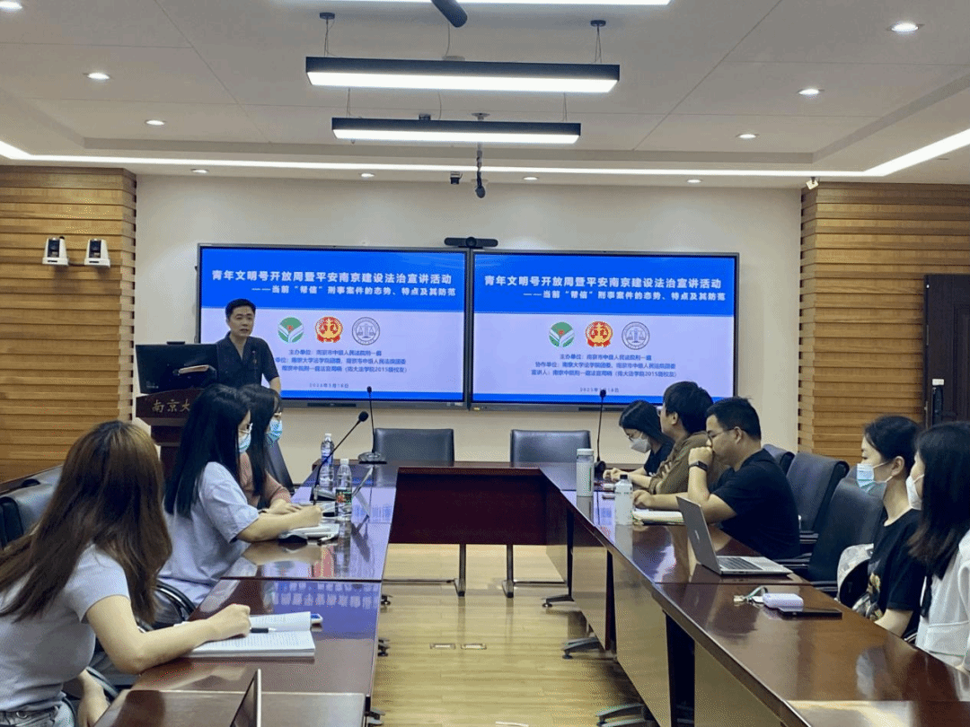2023年5月18日晚,“能动司法助力平安南京建设——刑事法官推进平安法治宣传进校园”活动在鼓楼校区逸夫管理科学楼1205会议室成功举办。本次活动由南京市中级人民法院刑一庭、南京市中级人民法院团委、p站视频