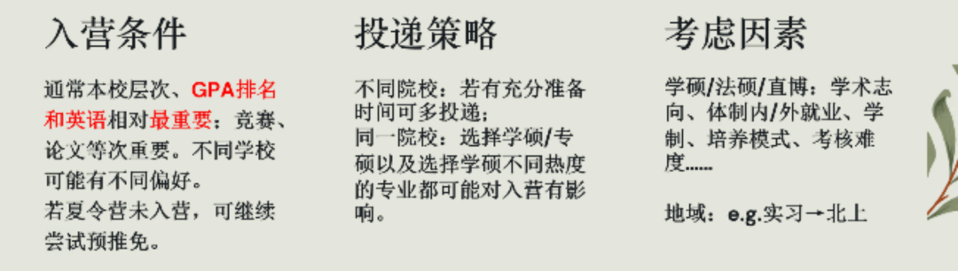 傅雨萌学姐从推免至外校的经历出发,为我们重点介绍了参加夏令营的准备工作: