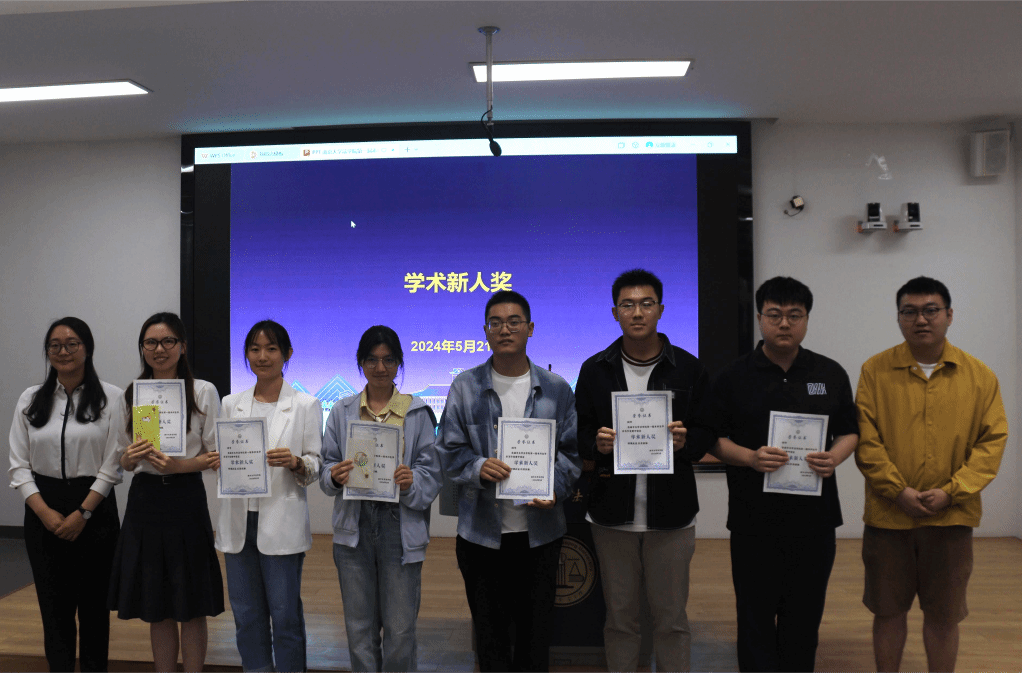 副院长陈坤老师,党委副书记马骏老师,冯洁语老师、金健老师、路敏玥老师分别为获一等奖、二等奖、三等奖、学术新人奖的同学们颁发奖状和奖品。