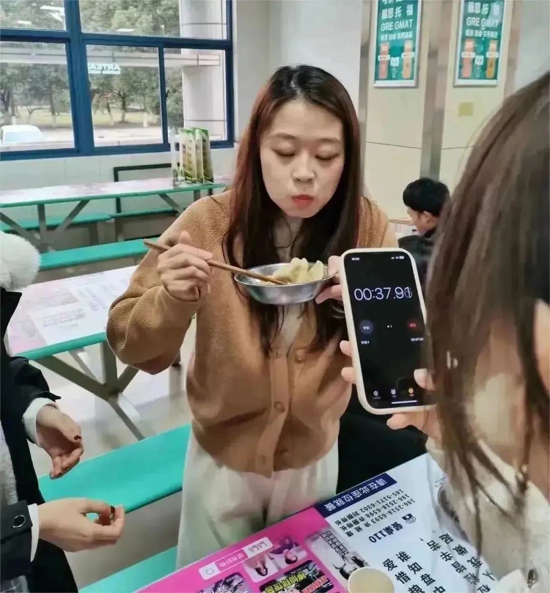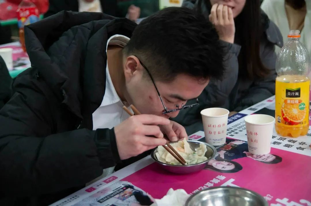 每组派出一名“大胃王”,承载着全组的荣光与希望而“应征出战”,限定十个饺子,用时最短吃完的即可荣获“大胃王”称号。