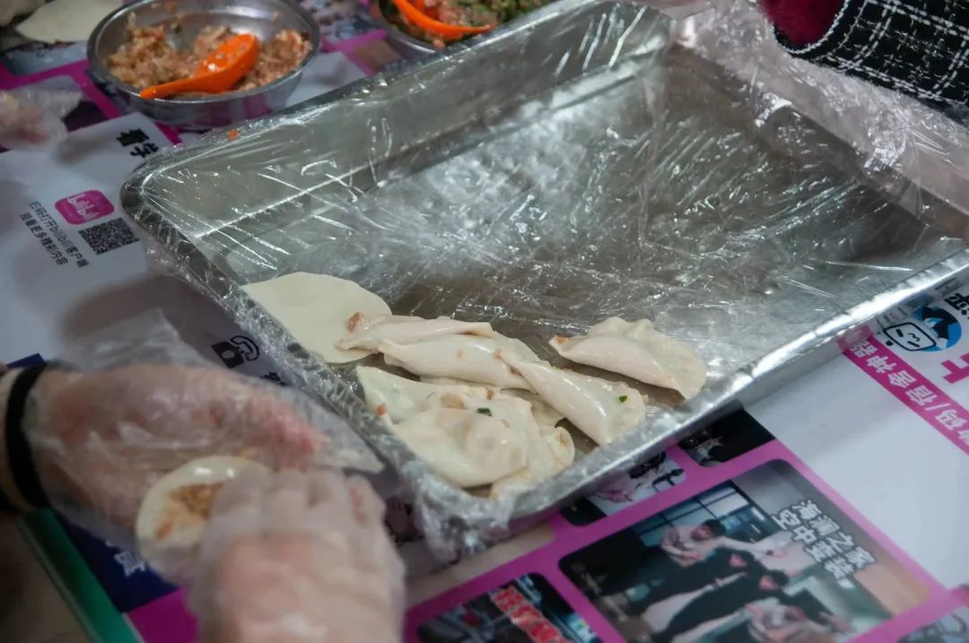 紧接着是第二个环节——计时包饺子,先包完三十个饺子的组即获得优胜。