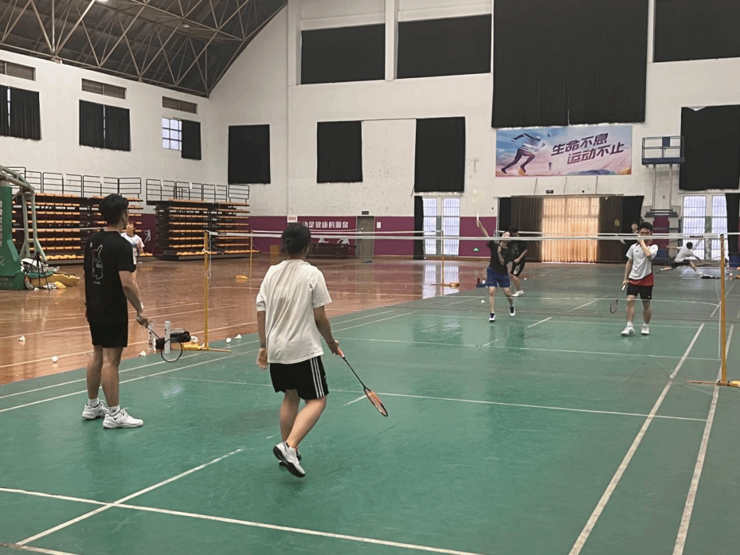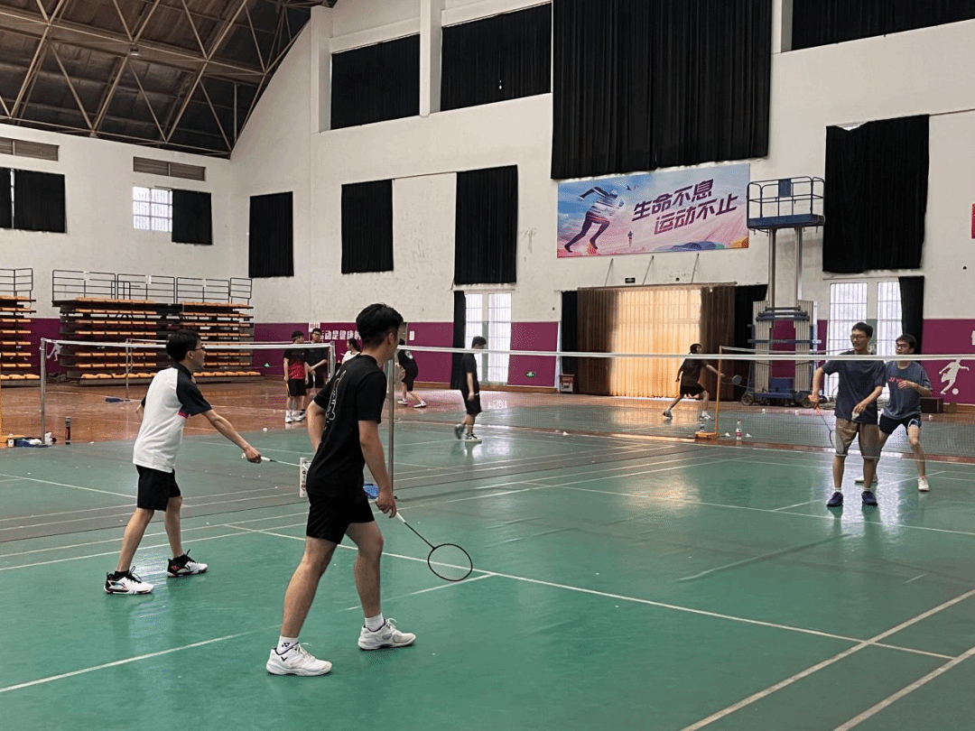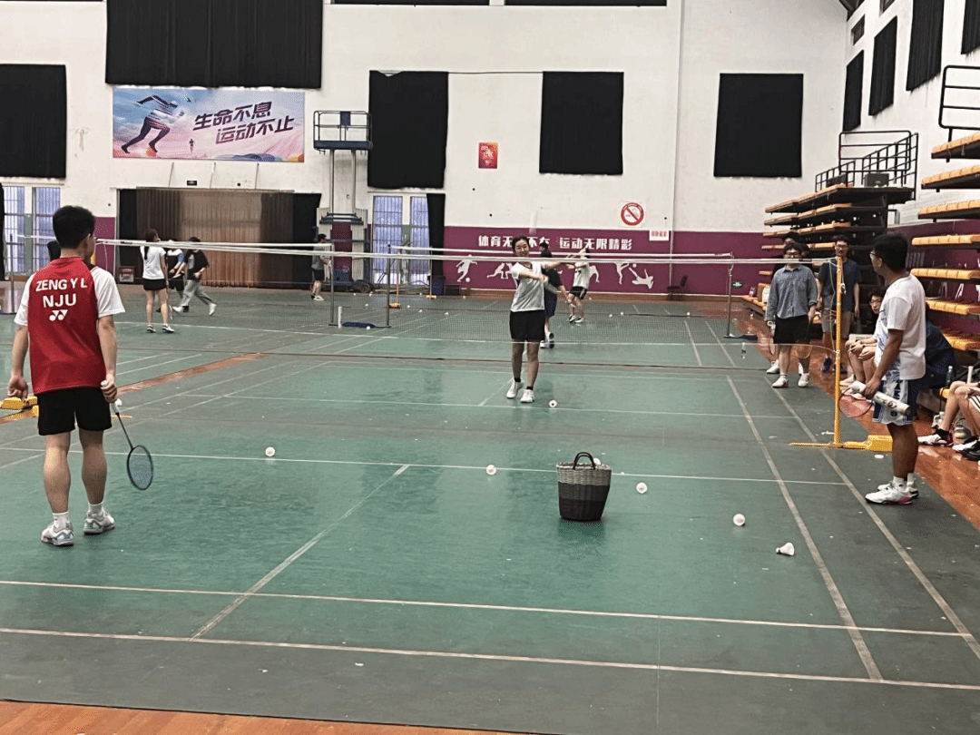 比赛当日首先进行的是男子单打和女子单打比赛。下午两点,男单小组赛正式开始。参赛者们斗志昂扬,全力角逐,羽毛球在空中划出一道道美丽的弧线。男单比赛共有12名选手参赛,其中有许多球技精湛、经验丰富的种子选手,例如曾获2022年浦口校区六院研究生新生羽毛球比赛团体赛冠军的曾宇龙同学、钟梓良同学,以及曾获2022年p站视频
