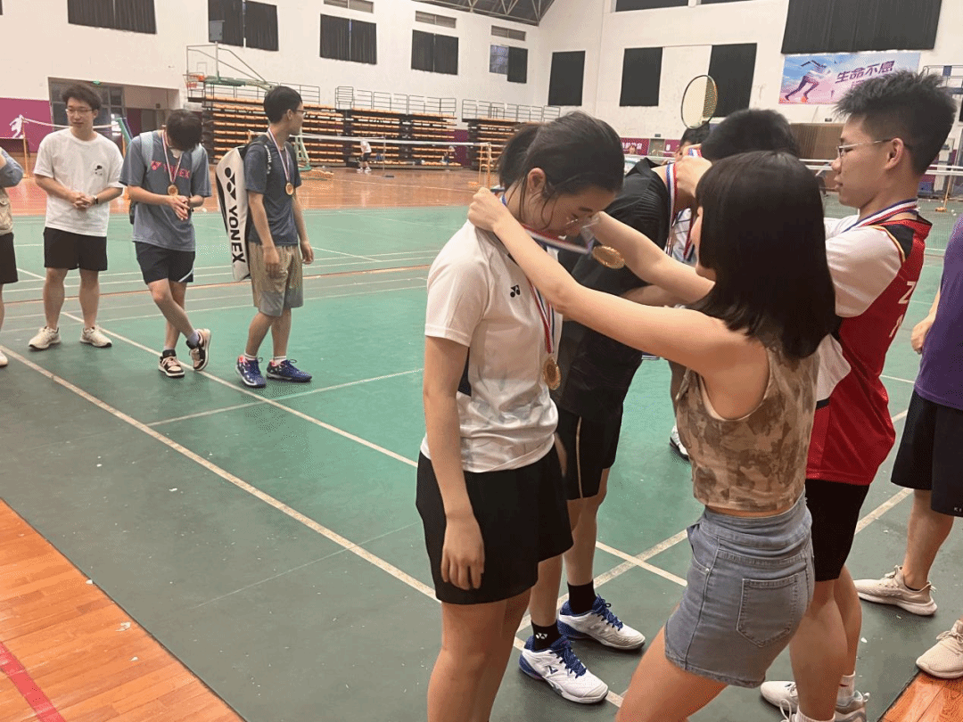 淘汰赛随机抽签,采取15分制,三局两胜,两两一组,胜者晋级决赛。经过激烈的淘汰赛阶段,最终角逐出三强,分别为钟梓良、李金卓与曾宇龙。在决赛开始前,李金卓同学因伤退赛,遗憾成为季军。最终,曾宇龙同学与钟梓良同学闯入决赛!决赛采取21分制,三局两胜。昔日队友在赛场相逢,两位种子选手都展现出了自己的韧性,精湛的球技让在场的观众们为之欢呼。在经过了激烈的对决后,曾宇龙选手最终拔得头筹,获得本次羽毛球比赛男单冠军,钟梓良同学获得男单亚军。