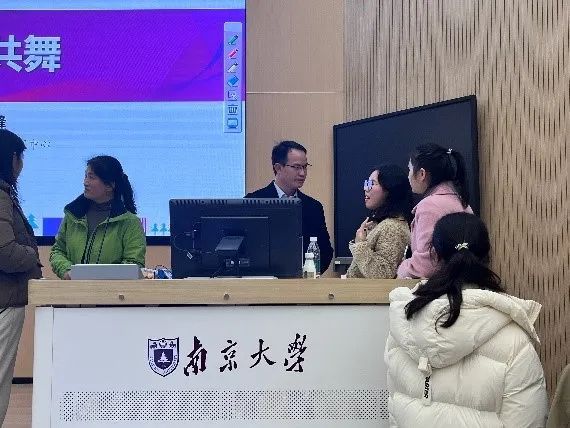 研究生新生辅导员王翠兰、专职组织员遇苏参与讲座。