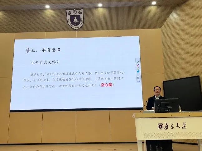 第二,学会释放情绪,追求内在的快乐。成雪峰请同学们回忆最近一次酣畅淋漓的哭泣,并说明了此种情绪表达方式的益处。人们往往因各种原因过度压抑自我而无法畅快表达自身的情绪。成雪峰提醒同学们,对于自身的情绪应当适度表达与释放,积极情绪的传递、情绪的适度表达有助于缓解压力、改善心理状态。
