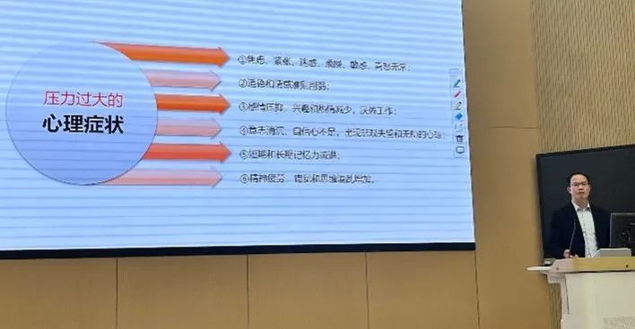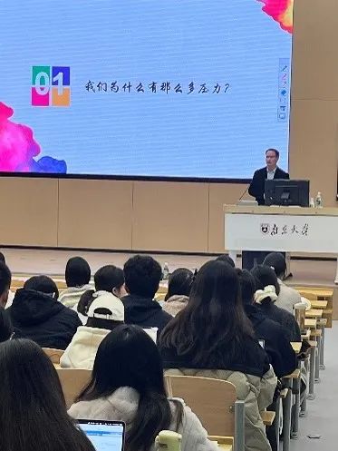 接下来,成雪峰从专业的视角,循序渐进地向同学们讲解了为什么会感到压力、压力的症状、如何应对压力。