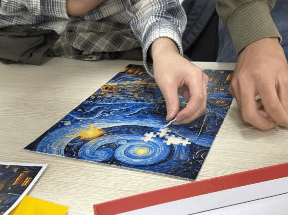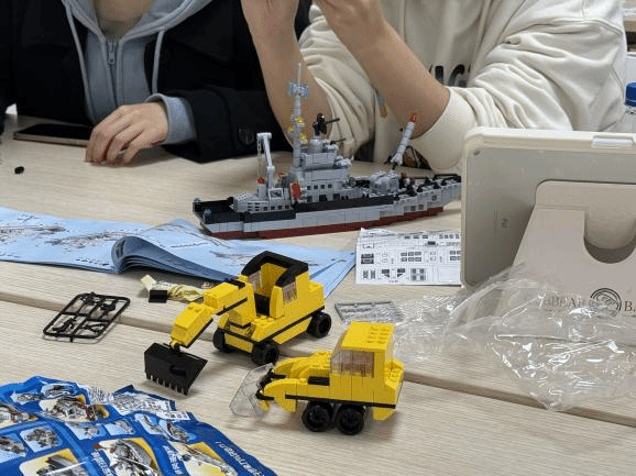 拼图与积木区域则是一片宁静与专注的氛围。同学们围坐在桌旁,分工合作,有的负责寻找拼图的边缘部分,有的负责拼接内部图案。乐高积木套装激发了同学们的创造力与想象力,他们根据自己的喜好搭建出各种造型独特的作品,分享创作过程中的乐趣与收获。