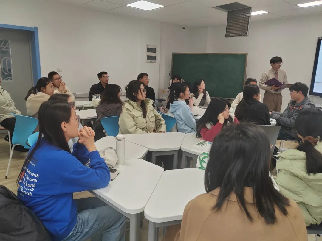 党委副书记马骏老师为本次交流会开幕致辞。马骏书记首先介绍了本次活动的举办背景。为了更好解决调研中同学们提出的研究生阶段时间紧任务重,缺少职业规划解疑答惑的问题,学院大力支持举办朋导交流系列活动,希望为同学们构筑更多答疑解惑、助力成长的平台。