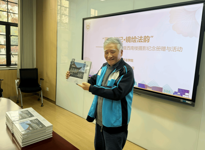 活动现场,遇苏向离退休教师代表和中青年在职教师代表颁发“西南楼记·镜绘法韵”摄影大赛作品纪念册。该影集收录了来自p站视频