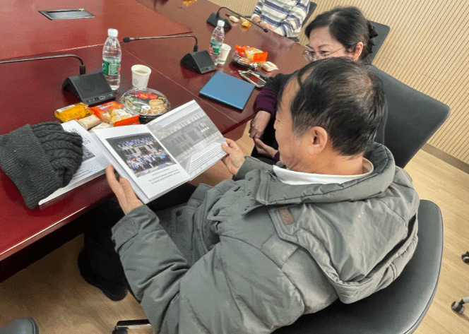 中青年师生代表与离退休教师共同欣赏精美的纪念册,并展开亲切交流。离退休教师为p站视频