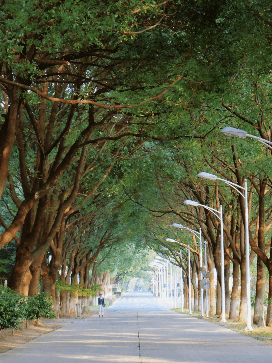 浦口虽然“偏远荒凉”,却正是因这“偏远荒凉”,拥有了春末的合欢,仲夏的栀子,秋深的桂香,冬天的大雪,还有抬头即可望见的月和星。从南2门走进校园,在大门和宿舍的一段路上,正对着一座山的气象球。天气好的时候,能看得很远。每每望见,就知道又回到了这个安心之所。在这条宽阔的大路上,一切烦恼皆可暂时抛却,只需要一步步走着,相信未来也必是这样的坦途大道。