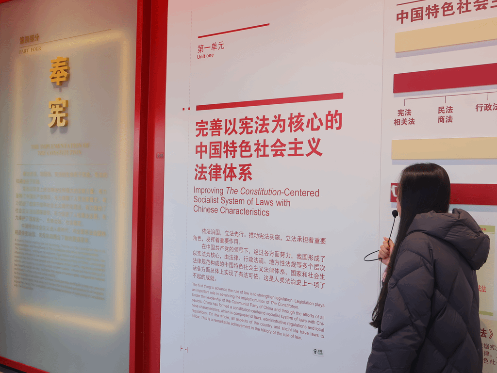 宣誓结束之后,同学们跟随志愿者的脚步一同追寻党带领人民寻宪、制宪、修宪、奉宪的伟大历史进程,生动学习宪法精神,增进对宪法的感悟与认同。