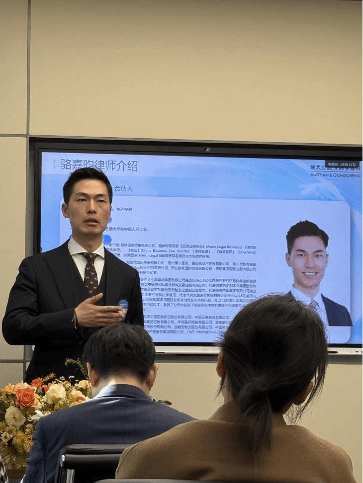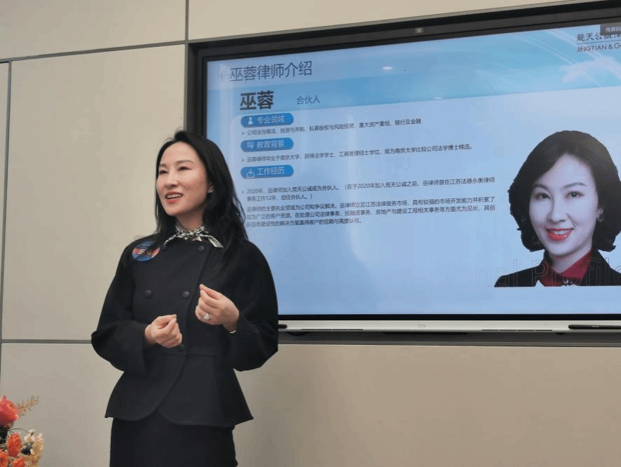 竞天公诚总所管理合伙人郎元鹏律师代表律所对同学们的到来表示热烈欢迎,他为同学们简要介绍了竞天公诚律师事务所的发展历程及主要业务领域,彰显出律所在境内外资本市场、资产重组、兼并收购、跨境投资等多个领域均已取得的突出成就。同时,郎律师还介绍了律所“专业、平等、包容、合作”的p站视频,在所内律师的共同努力下,竞天公诚律师事务所被建设为综合性、规模化、国际化的中国一流律师事务所。在职业建议上,郎律师鼓励同学们不能用传统的思维做律师,不要排斥做传统业务,但也要不断拓宽自身的知识面,多尝试一些新兴领域。
