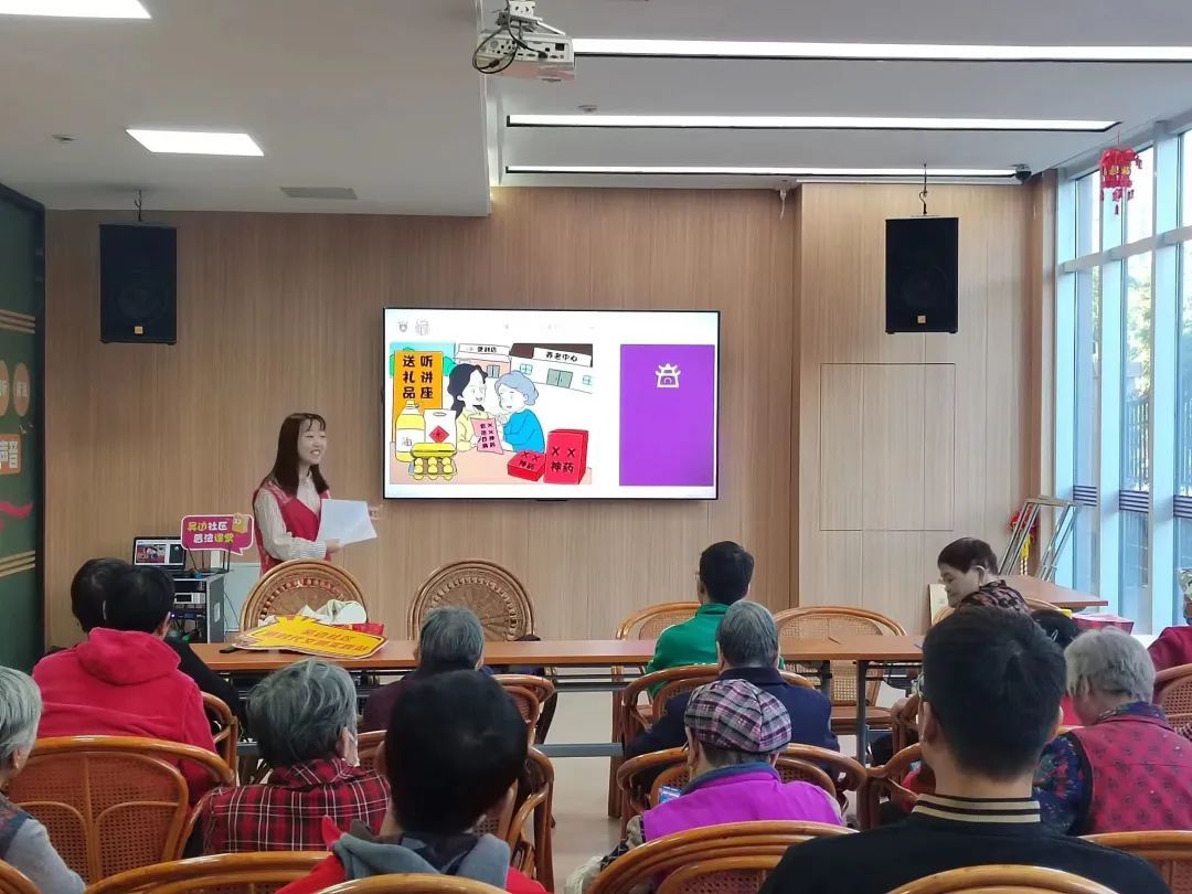 志愿者围绕养老反诈、权益保护等与老人生活息息相关的法律问题,进行了生动的普法宣讲。
