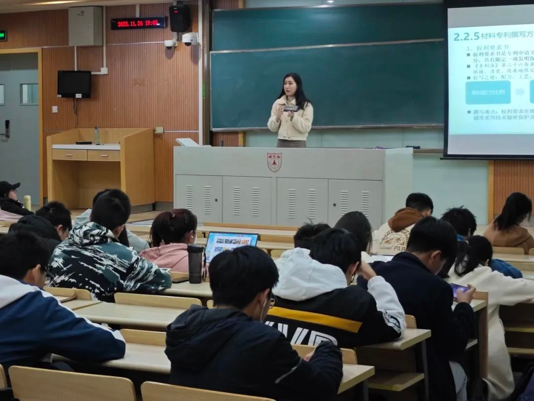 现代工程与应用科学学院,开展了“法言智汇”之“知识产权进院系(现工院篇)”的活动。在本次活动中,2023级法律硕士王晨同学围绕“材料领域的专利保护”这一现工院同学感兴趣的法律问题,进行了细致生动的普法宣讲。