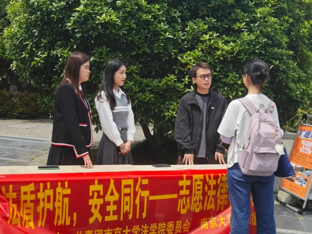 活动当天,阳光正好,微风不燥。志愿团队在鼓楼校区、仙林校区食堂附近的人群密集处布置了法律咨询台,以饱满的热情和专业的态度,为同学们普及法律知识、解答困惑疑难。