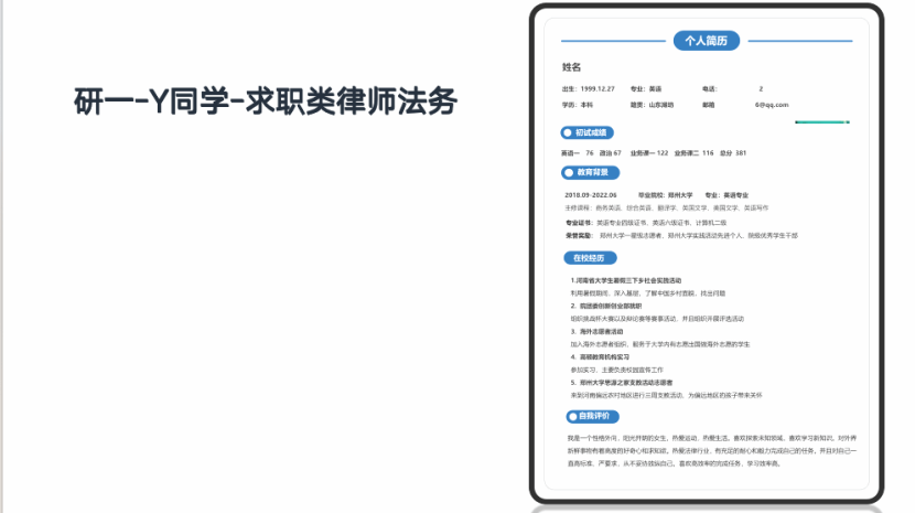 学生会、研究生会联合举办的求职训练营第一期简历制作讲解活动圆满结束。现就职于江苏法德东恒律师事务所破产项目中心的2021级法本法硕优秀毕业生李润卿学长,为p站视频