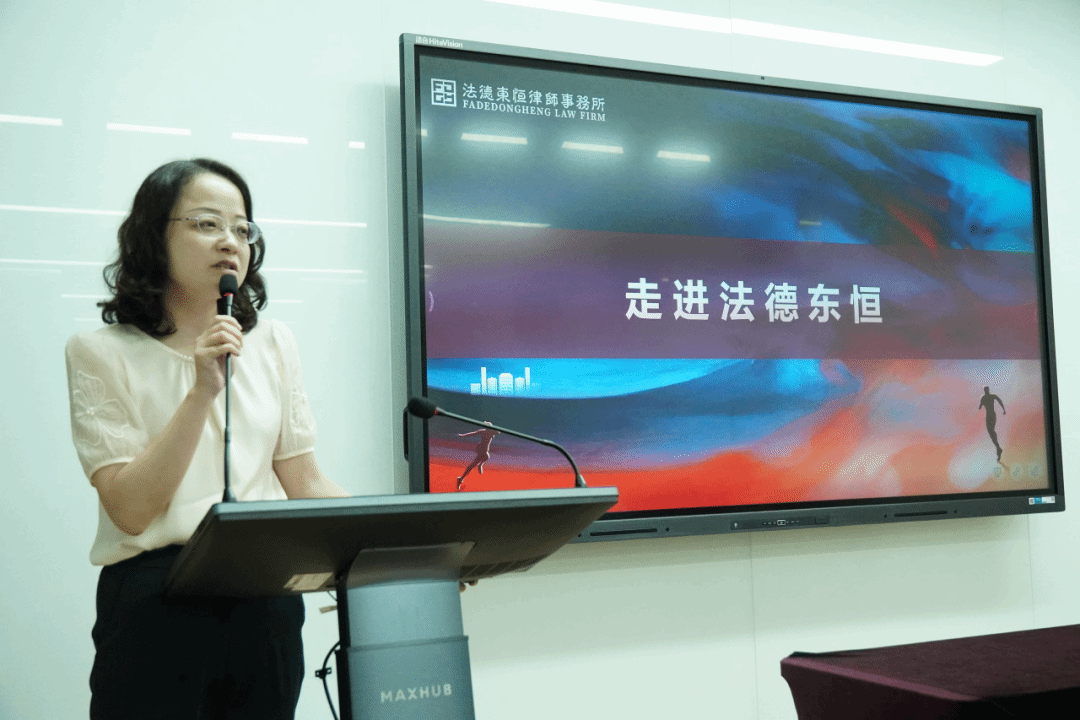 江苏法德东恒律师事务所人事经理茅蓉蓉女士从法德东恒的发展历史、律所荣誉、律所规模、人员结构等展开介绍。法德东恒律师事务所深耕江苏、布局长三角、辐射中国法律服务市场,在房地产、破产重整、投融资、数据网络与知识产权等业务领域均取得了不俗的成绩。法德东恒重视p站视频打造与专业人才培养,为青年律师成长提供明晰的发展路径。同时,律所即将迁入新办公大楼,为律师们提供更舒适的办公环境。