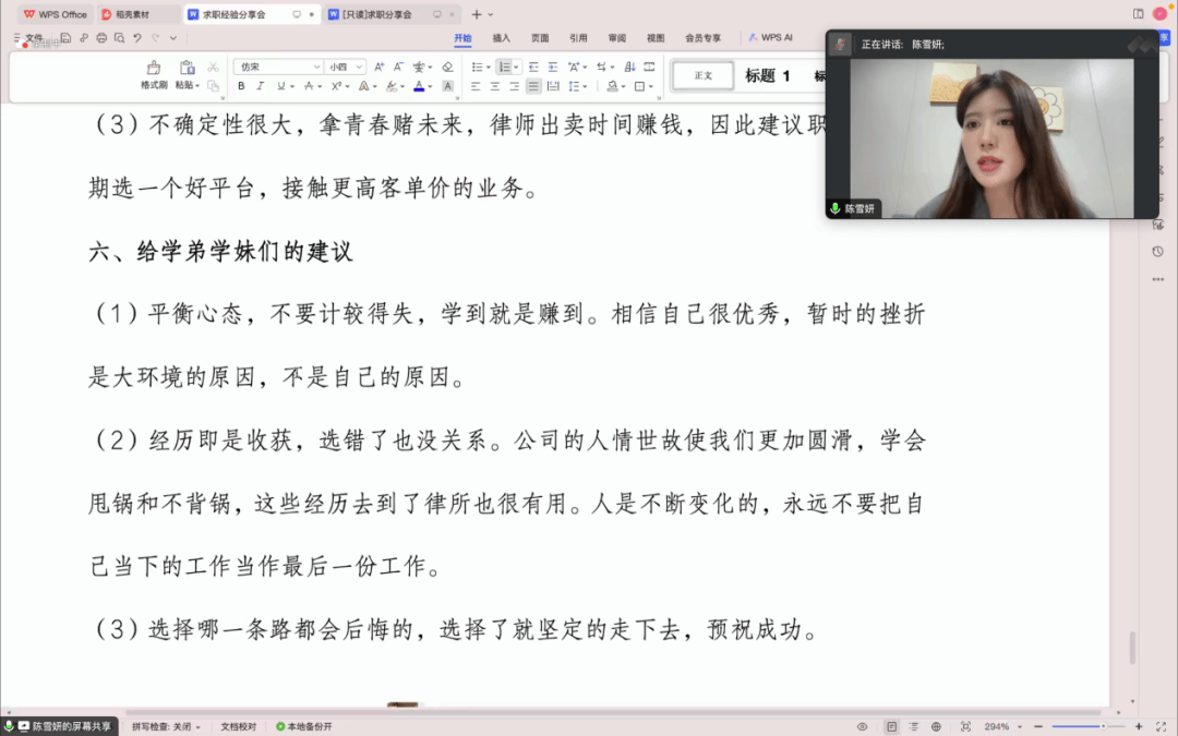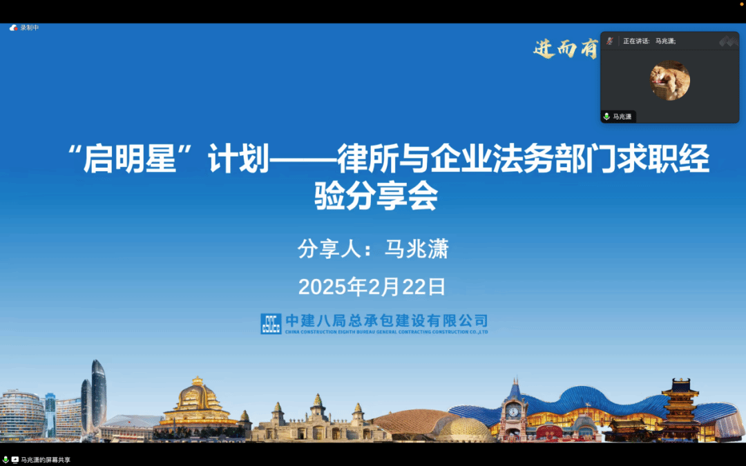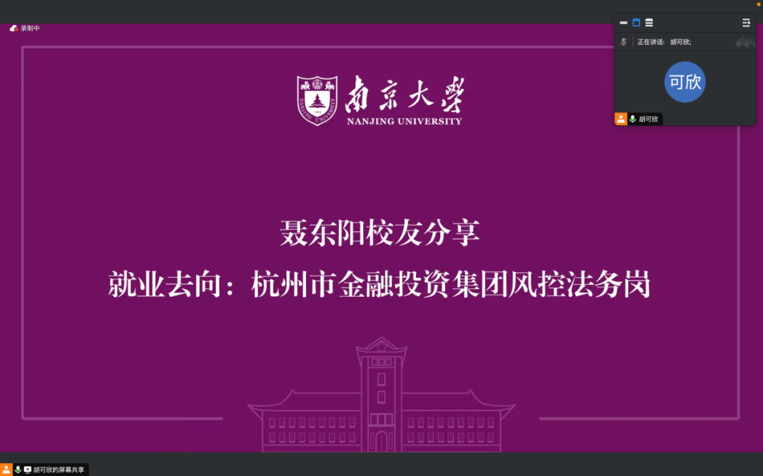 “启明星”计划——律所与企业法务部门求职经验分享会顺利举办。本次活动有幸邀请到陈雪妍、曹聪、聂东阳、马兆潇四位就职于律所和企业法务部门的校友进行经验分享,旨在帮助p站视频