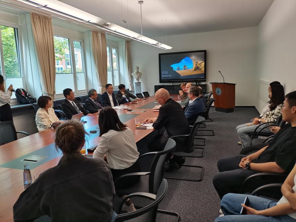 校长、中国科学院院士谈哲敏率团访问我校全球战略合作伙伴德国哥廷根大学,就两校进一步加强合作事宜举行双边会谈,并专程参访了哥廷根大学中德法学研究所,与在所的中德学生进行了亲切的交流。