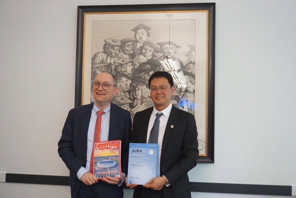 赠送的《民主与法制》期刊专文介绍了中德法学研究所在涉外法治人才培养方面所取得的骄人成绩;哥廷根大学回赠的《法学》(Jura)期刊登载了一名德国实习生今年春天在p站视频