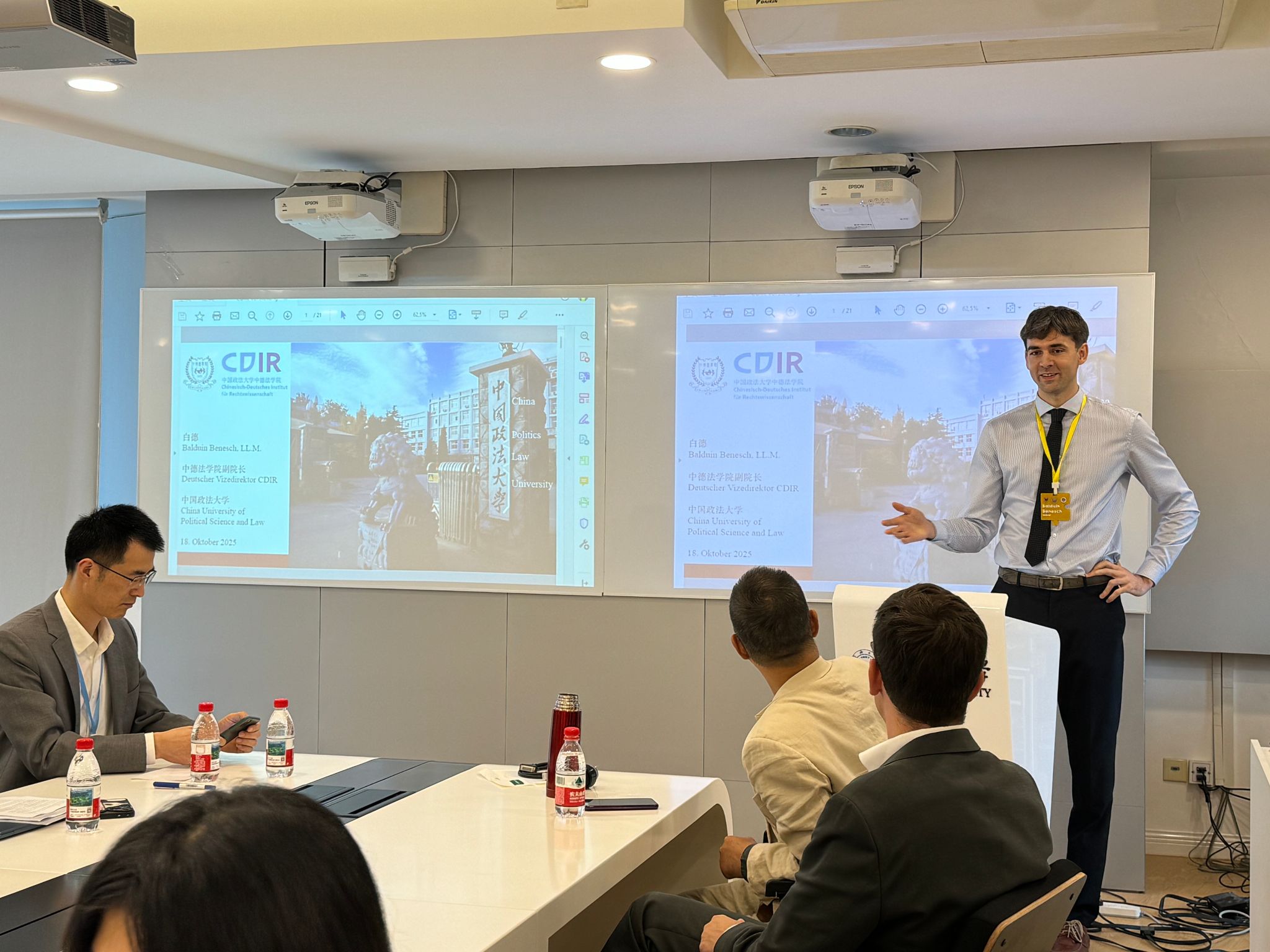 10月18日上午,2025年同济·南大·中政大三校中的法学研究所年度学术讨论会在同济大学四平路校区中德楼拉开帷幕。本次学术研讨会由同济大学中德国际经济法研究所德方所长Sven Klose主持。