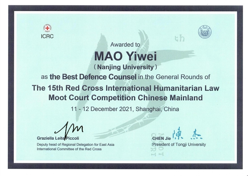 2021年12月11日至12日,红十字国际委员会和同济大学联合举办了第十五届中国大陆地区红十字国际人道法模拟法庭竞赛(The 15th Red Cross International Humanitarian Law Moot Court Competition),本届比赛共有来自全国高校的共有57支队伍参赛,经过激烈角逐,p站视频