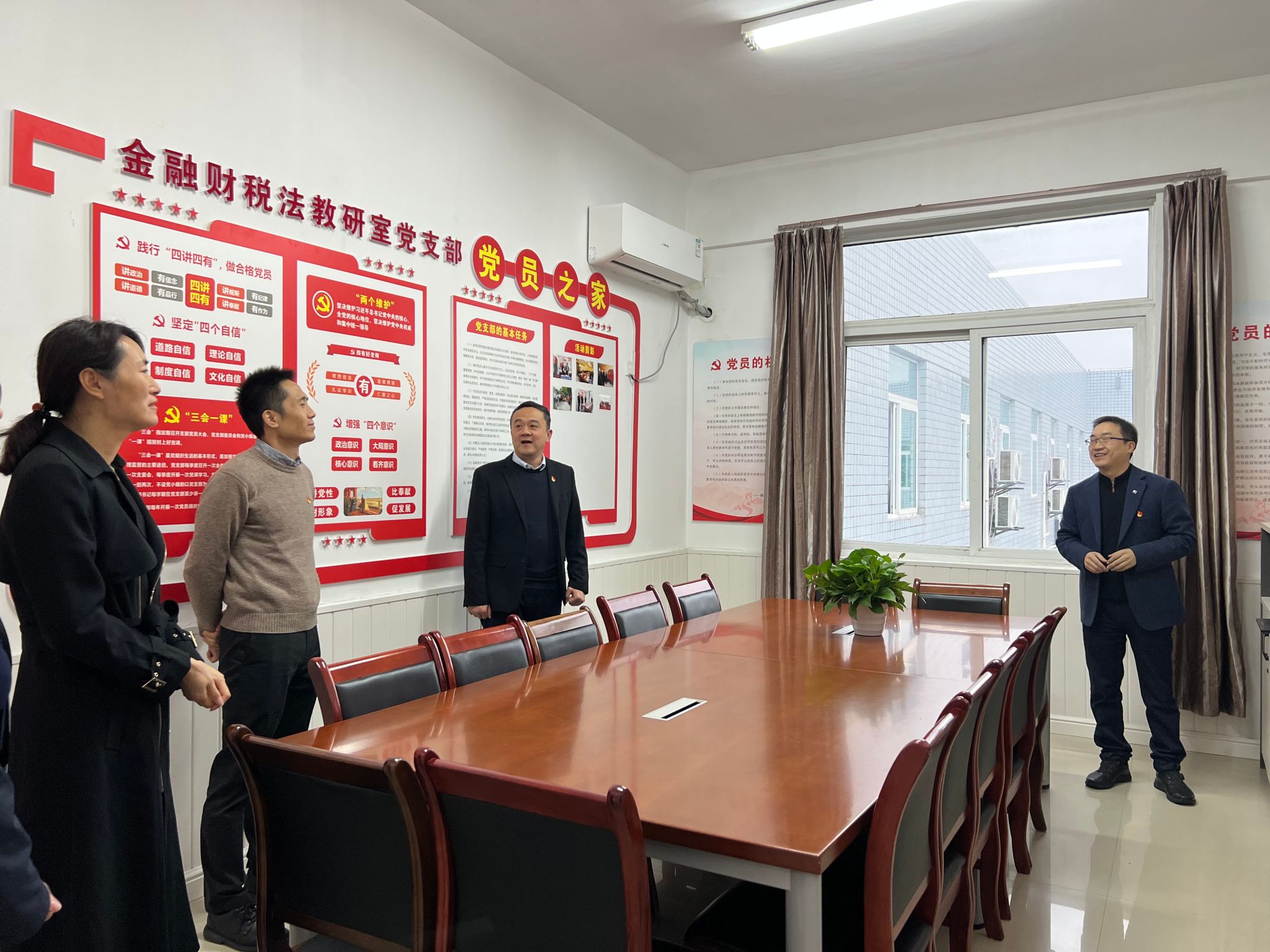 整体情况和学院党委在数字党建平台构建、党政思政队伍建设、涉外法治人才培养等方面的工作经验与成效。围绕党建业务深度融合、党建“双创”经验做法、党建品牌纵深打造等主题,调研组与参会人员开展了深度交流,对下一步加强校院交流合作、建立常态化长效化党建工作联络机制提出了意见建议。