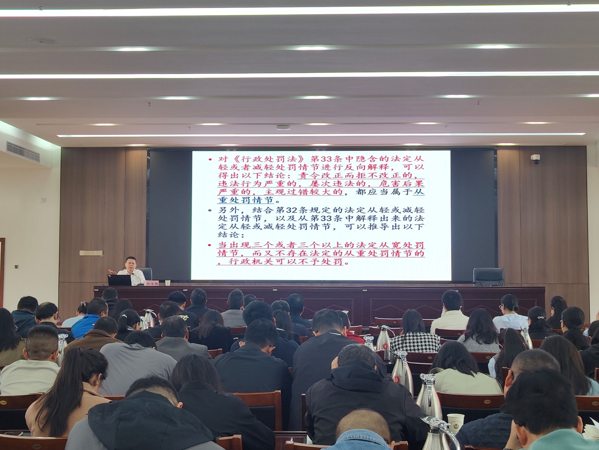 在为期2天的培训中,王太高、肖泽晟、冯洁语三位学者围绕《中华人民共和国行政处罚法》、行政处罚裁量基准及其适用、民法典是怎样保护我们的生活的、行政诉讼法与行政复议法等专题为学员授课。授课内容丰富、条理清晰、重点突出、事例生动,紧扣行政执法工作实际,具有很强的针对性和指导性,有效帮助学员夯实了行政执法知识基础,解答了大家在实际行政执法工作中遇到的困惑。