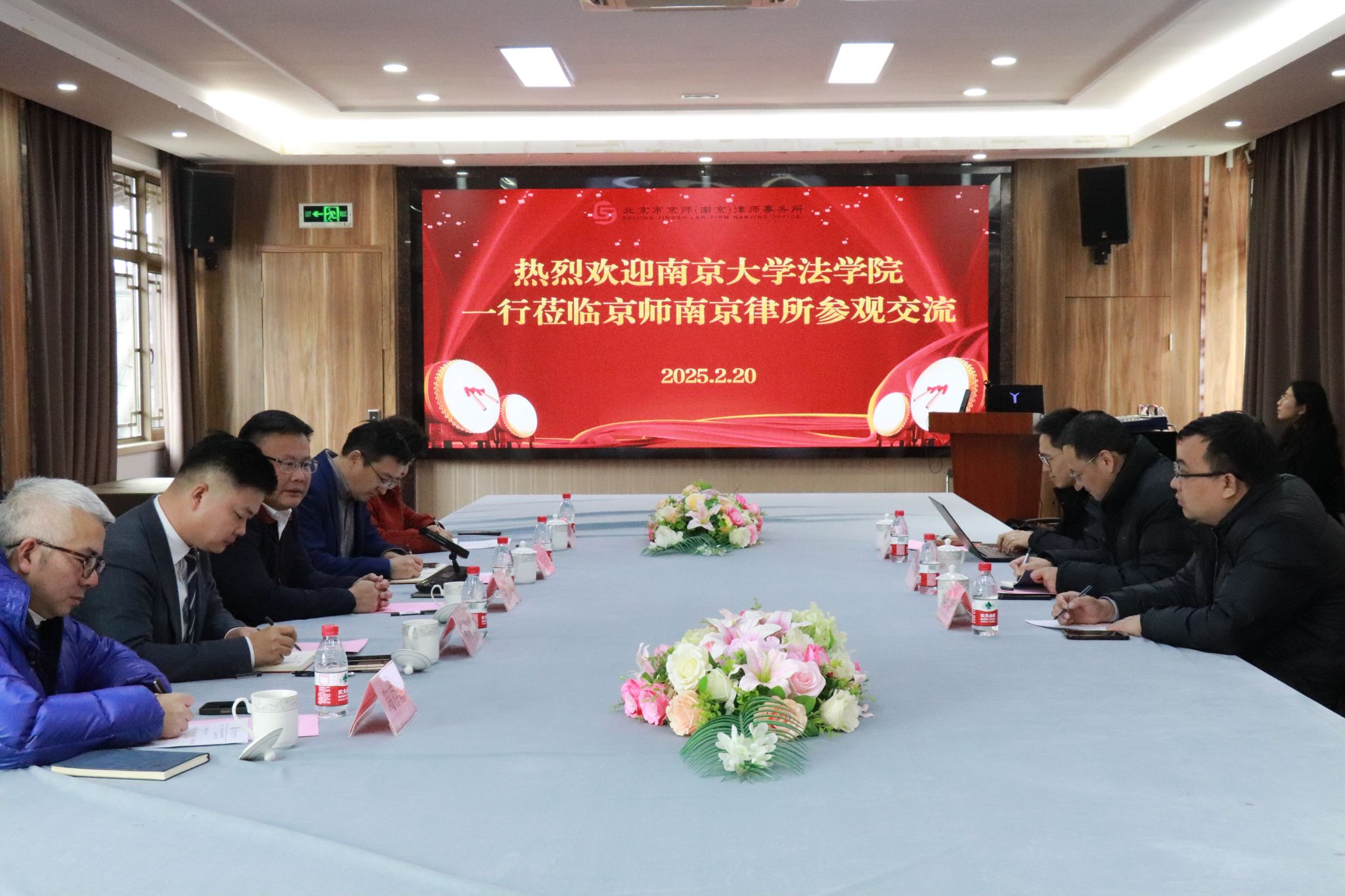与京师南京律所在教育与实践领域的合作。京师南京律所主任宗庆华、执行主任李宝团、党支部书记朱宏、青工委主任周钲皓及特邀嘉宾江苏策城城市更新有限公司执行董事陶存鑫热情接待。