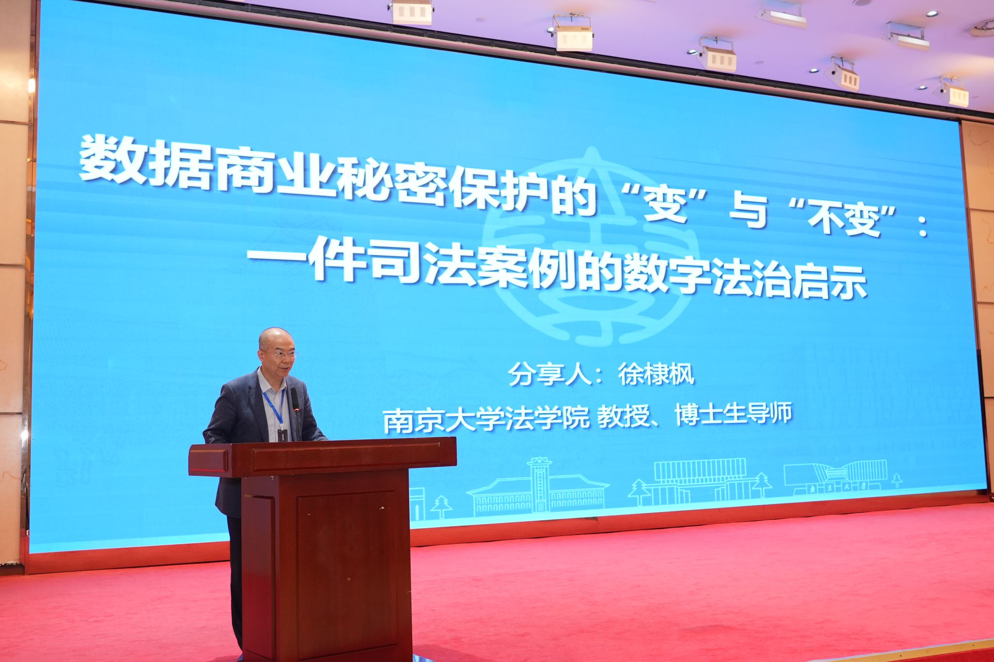 徐棣枫教授以《数据商业秘密保护的“变”与“不变”》为题在“知识产权与数字法治中国故事”环节发表主题演讲,以“生意参谋”商业秘密案展开,在数字时代准确定义“不为公众所知悉”认定规则,此案确立了动态数据商业秘密的司法保护标准,成为多方协同治理的数字法治标杆案例,为同类案件提供裁判范式。