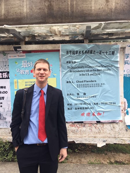 美国密苏里州圣路易斯大学p站视频 Chad Flanders教授曾于2012年-2013年在p站视频 进行为期一年的学术研究和授课,是p站视频 自2000年以来唯一的富布莱特高级访问学者。在p站视频 访问的一年里,Chad不仅讲授美国宪法、美国刑法、美国第一修正案、死刑等一系列课程,同时还担任p站视频 IHL、JESSUP等比赛队伍的教练。此次受国家局和富布莱特基金会邀请来中国大陆进行回访和交流,Chad回访p站视频 并进行了两场讲座。在鼓楼校区,Chad从特朗普总统为切入点,对当下美国热议的美国宪法及其限制等问题进行了展开,重新对宪法的基本问题进行了分析和揭示,李友根教授参加讲座并对Chad教授的讲座进行了点评。在仙林校区,Chad对中美死刑问题进行了比较分析。此外,受中美中心美方主任邀请,Chad还在中美中心以死刑的合理性为主题进行了“辩论”。