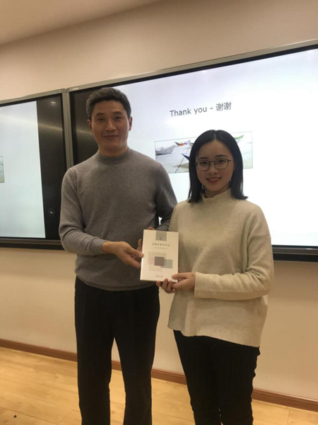 图书馆馆长曹明老师接受赠书,并向杜斐教授颁发感谢状