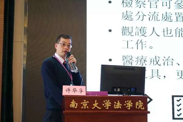 代孟良博士作了题为“美国性罪犯限制居住制度的困境”的报告;台湾中正大学犯罪防治系陈巧云教授作了题为“认知神经科学在药物滥用再犯之应用”的报告。江苏监狱管理局吴旭研究员和台湾中正大学犯罪防治系马躍中教授对本场专题研讨作了评议。