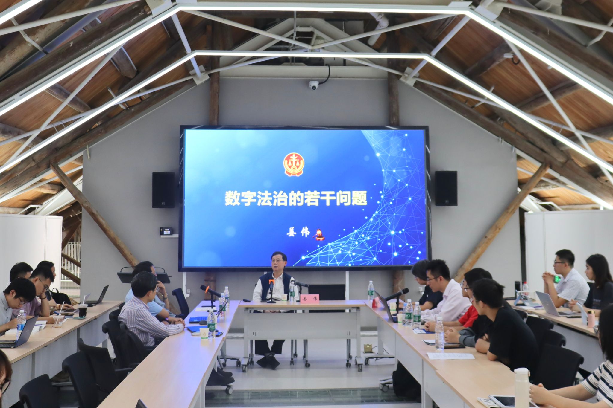 西南楼四楼南翼报告厅举行,中国法学会网络与信息法学研究会会长姜伟进行了题为《数字法学的若干问题》的学术报告。