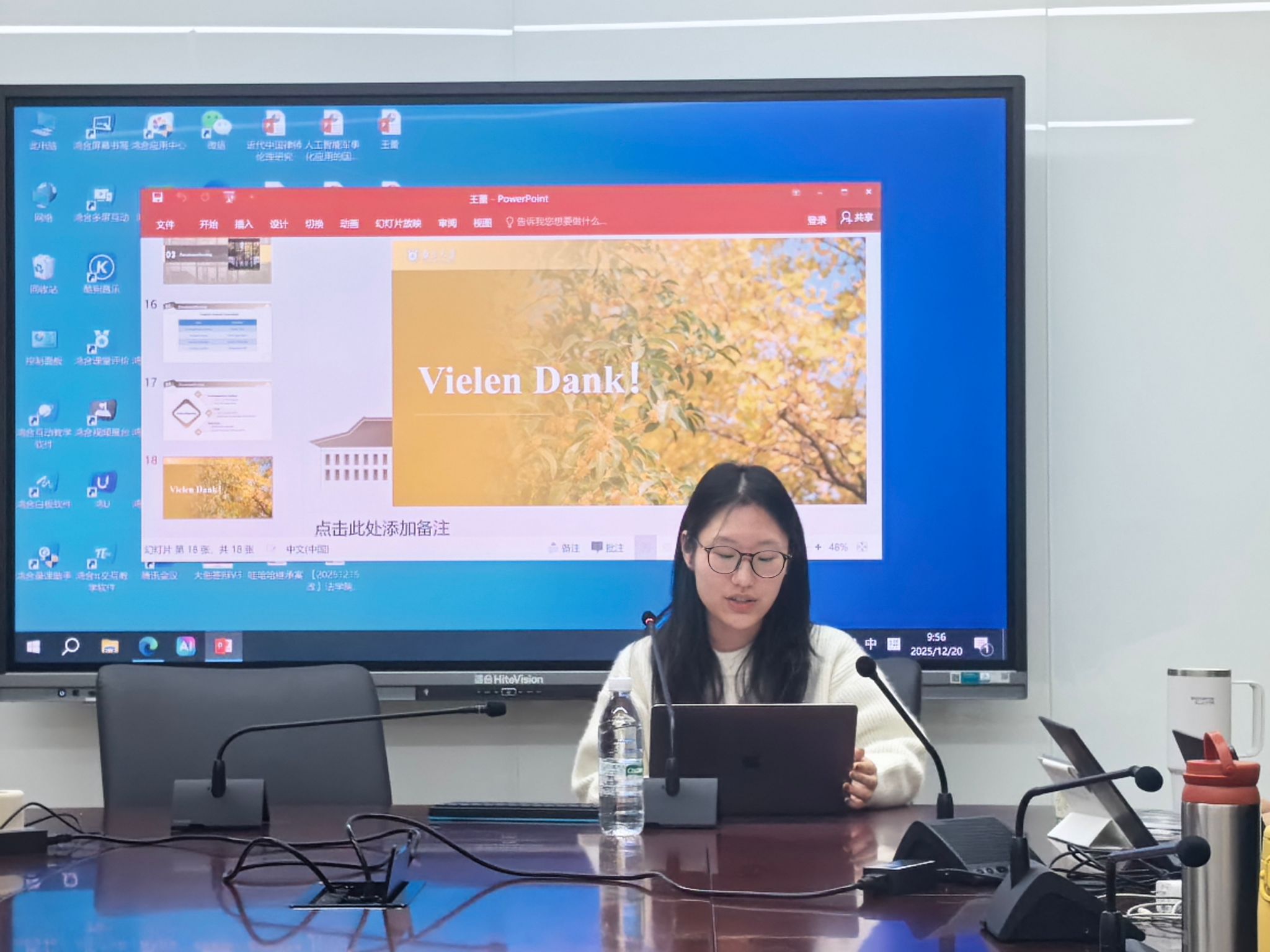 第五位报告人王蕾同学的报告主题为《中德行政法上的调解》,该报告系统比较了中国与德国在行政调解制度上的核心差异与内在逻辑。报告指出,中国行政调解以行政机关为主导,侧重于通过行政权协调化解纠纷,其制度功能重在维护社会稳定性与治理效率,但在程序中立性、当事人自愿性保障及权利救济机制方面存在结构性短板。中国制度体现出较强的行政主导与社会治理取向,德国则更强调权利平衡与程序自治的法治国家逻辑。通过这一比较,报告为思考如何在兼顾治理效能的同时强化程序正义与权利保障提供了重要的制度参照。