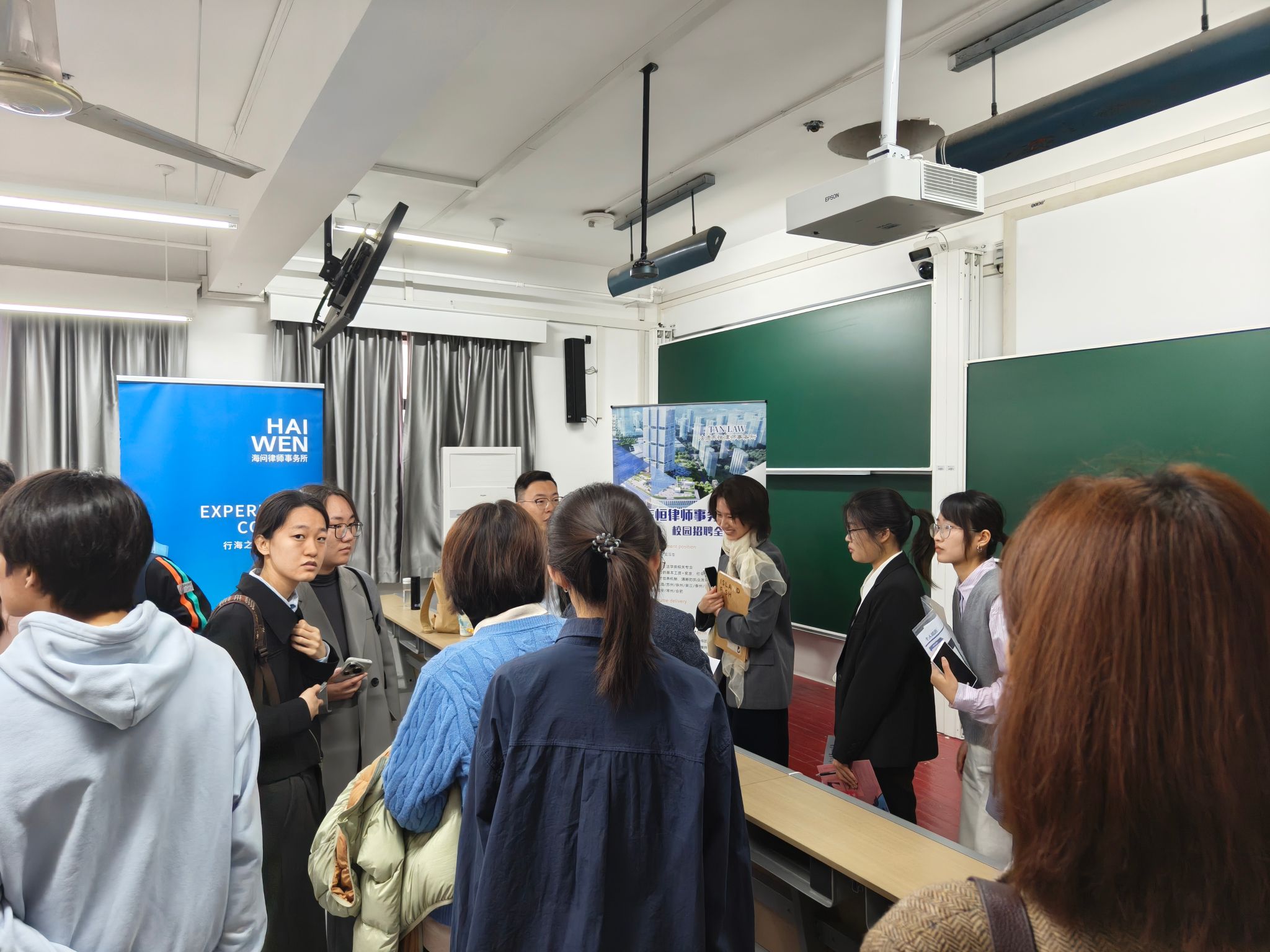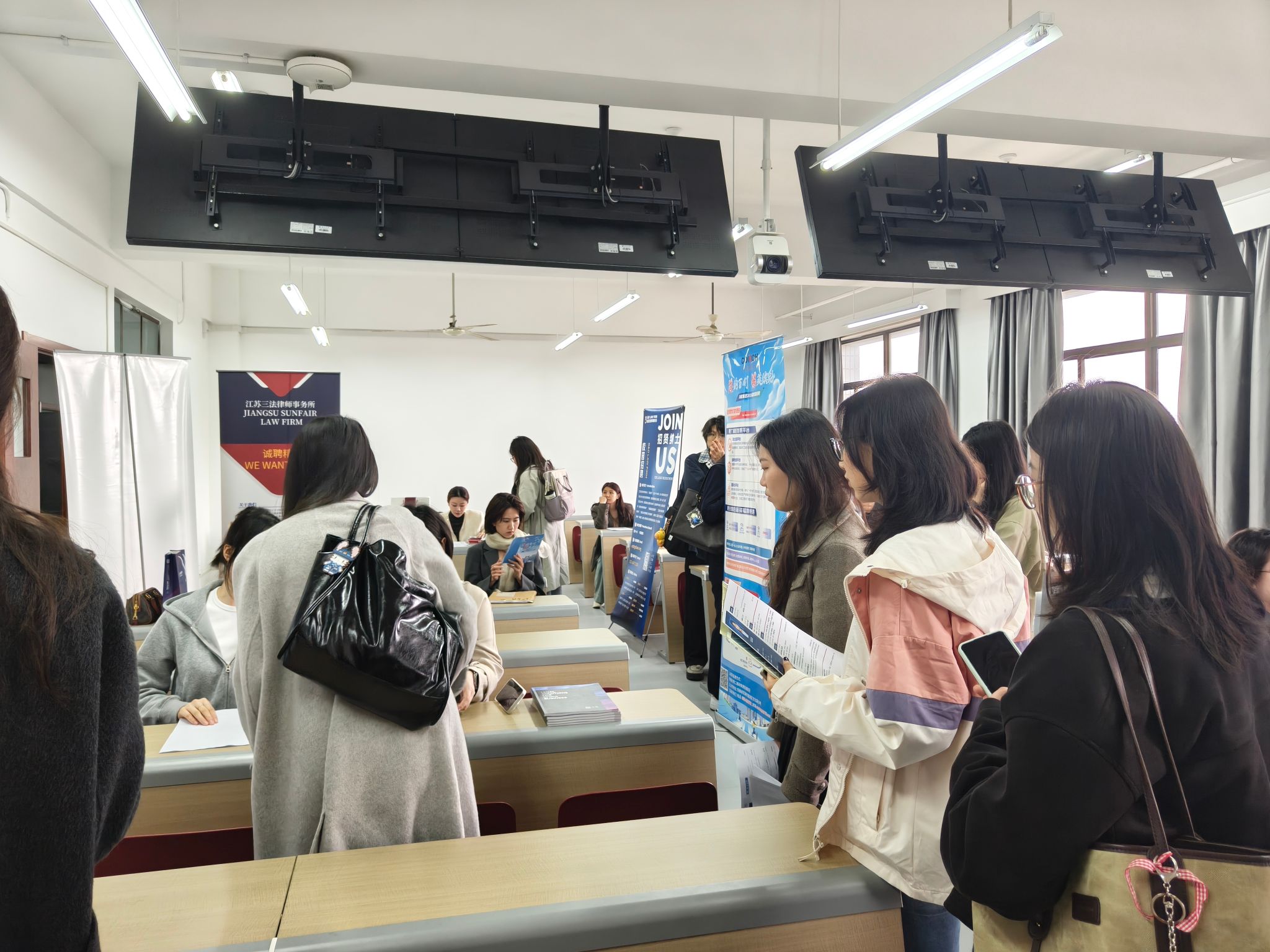 滚动式专场宣讲:招聘会现场同步开设专场宣讲教室,多家知名律所依次开讲,快速解析业务布局、用人标准与培养体系,助力学子高效锁定心仪目标。