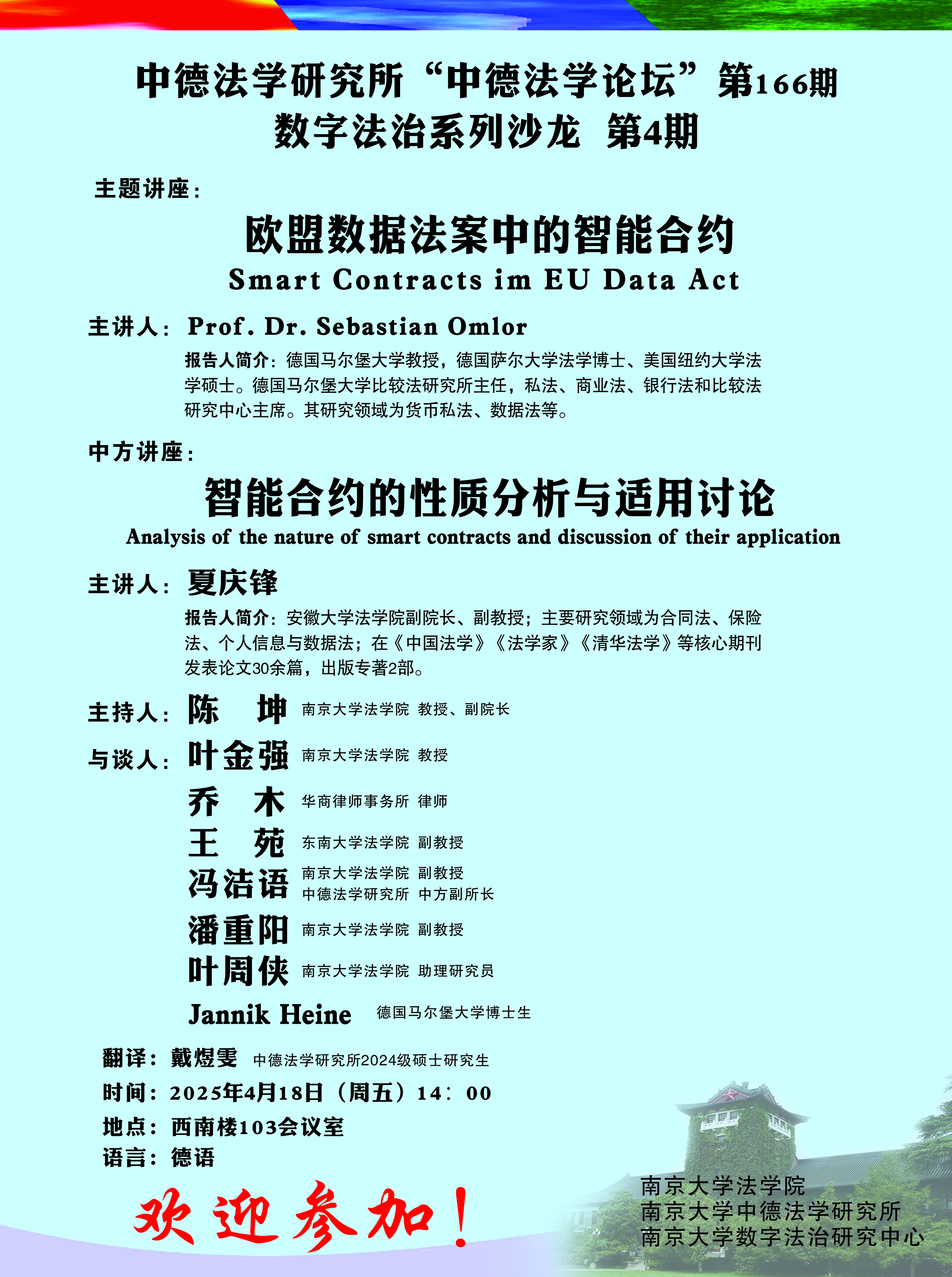 中德法学研究所“中德法学论坛”第166期数字法治系列沙龙第4期海报