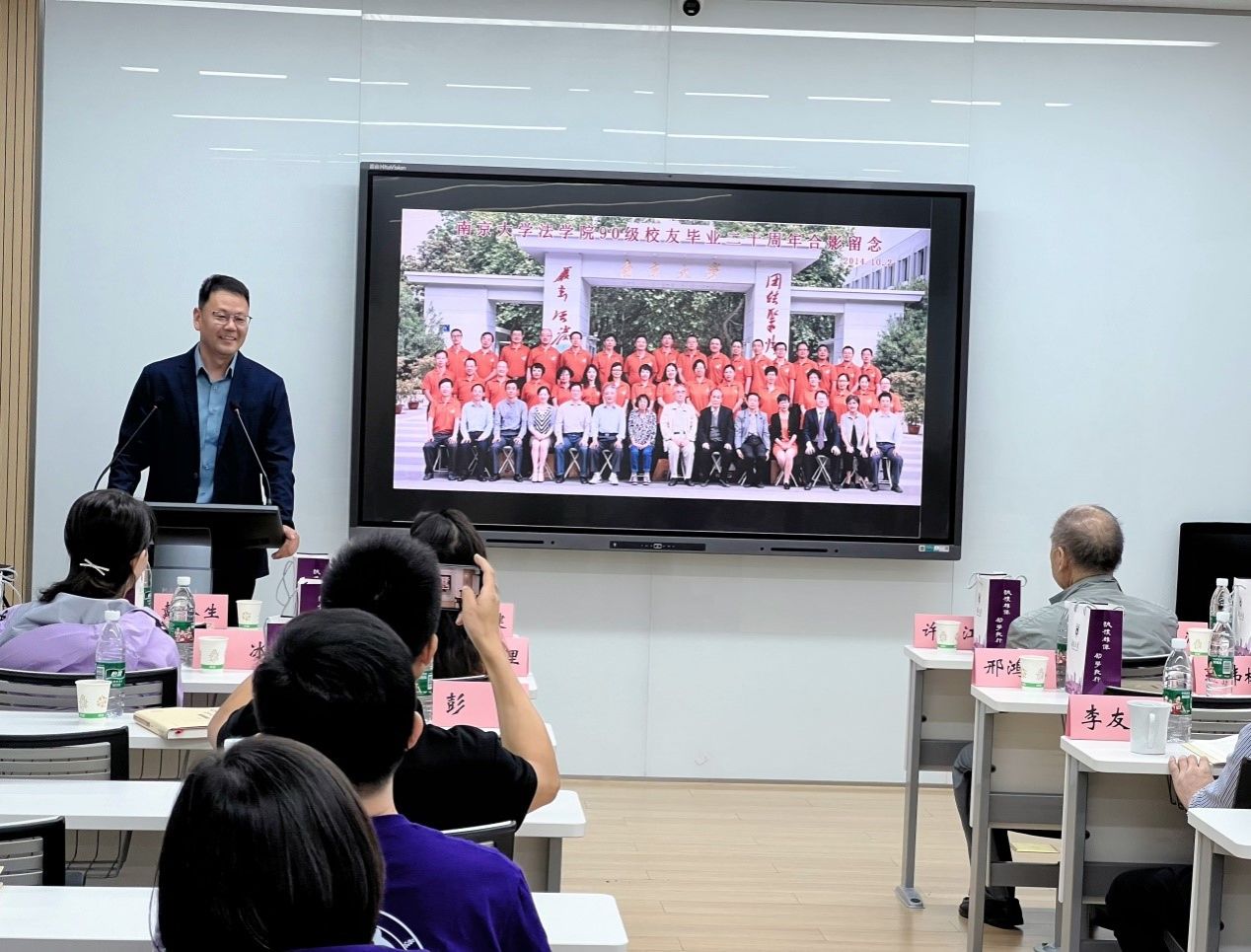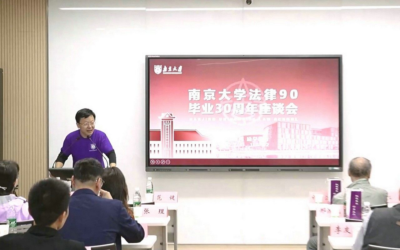 10月2日,秋高气爽、桂花飘香,p站视频 1990级本科校友集体返校,在鼓楼校区西南楼108室举行毕业30周年座谈会,p站视频 院长彭岳、副院长杨阳,任课教师代表孙国祥、张淳、许江、范健、戴奎生、邢鸿飞、郭伟林、张理、肖冰、方文晖、李友根、杨春福应邀参加。座谈会由90级本科校友、p站视频 校长助理李斌主持。彭岳院长首先代表p站视频 致辞,热烈欢迎各位校友返校,并介绍了p站视频 近年来发展情况和建设成就。随后,返校校友依次发言,报告30年来的工作、学习、生活情况,表达对母校和p站视频 的感恩之心、思念之情。接下来,任课教师代表纷纷发言,表达了对各位校友的勉励期待和美好祝愿。最后,90级本科辅导员李友根教授作总结发言,深情回忆90级本科在校期间的成绩和趣事,勉励各位同学永葆初心、携手前行。