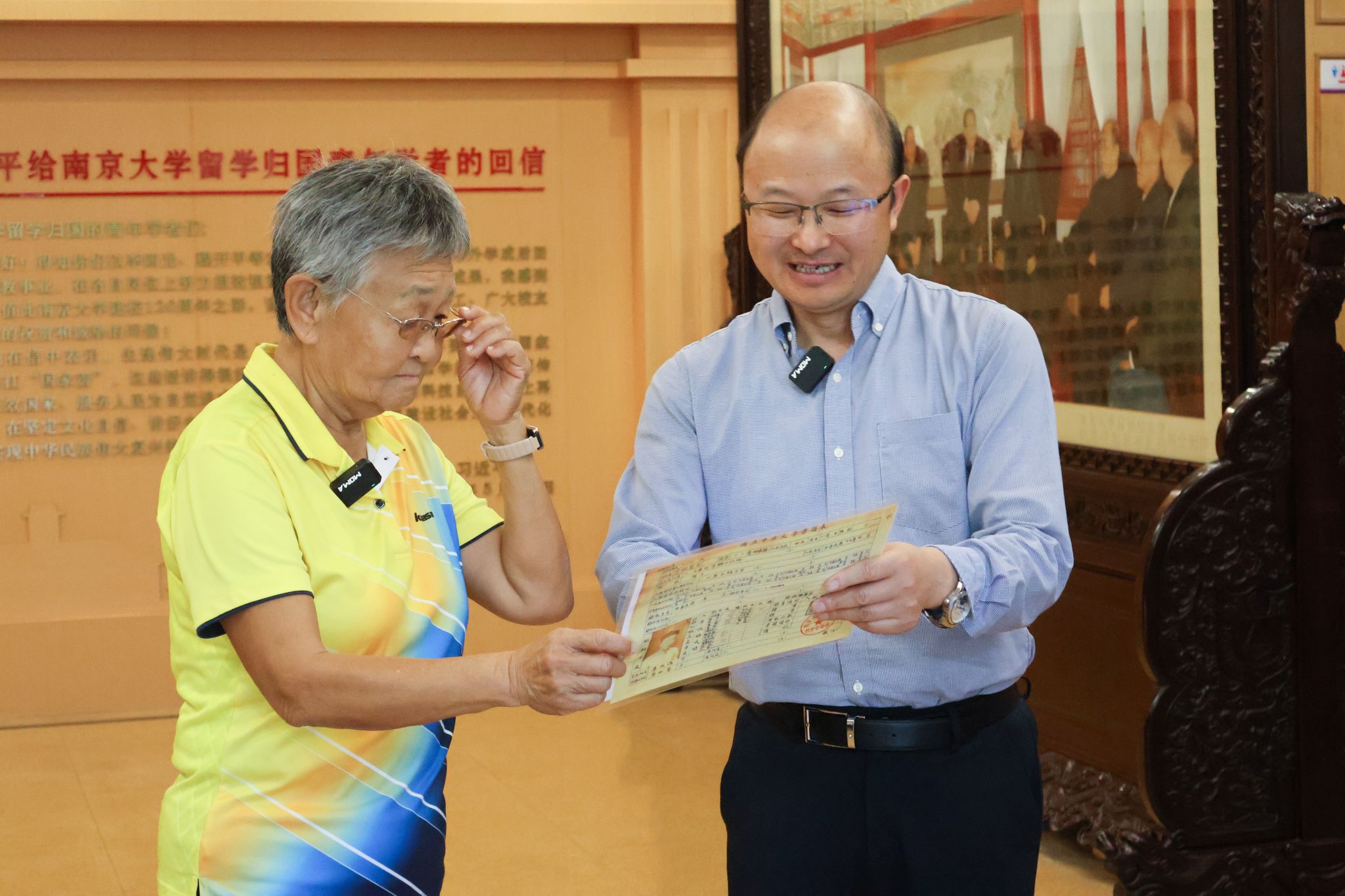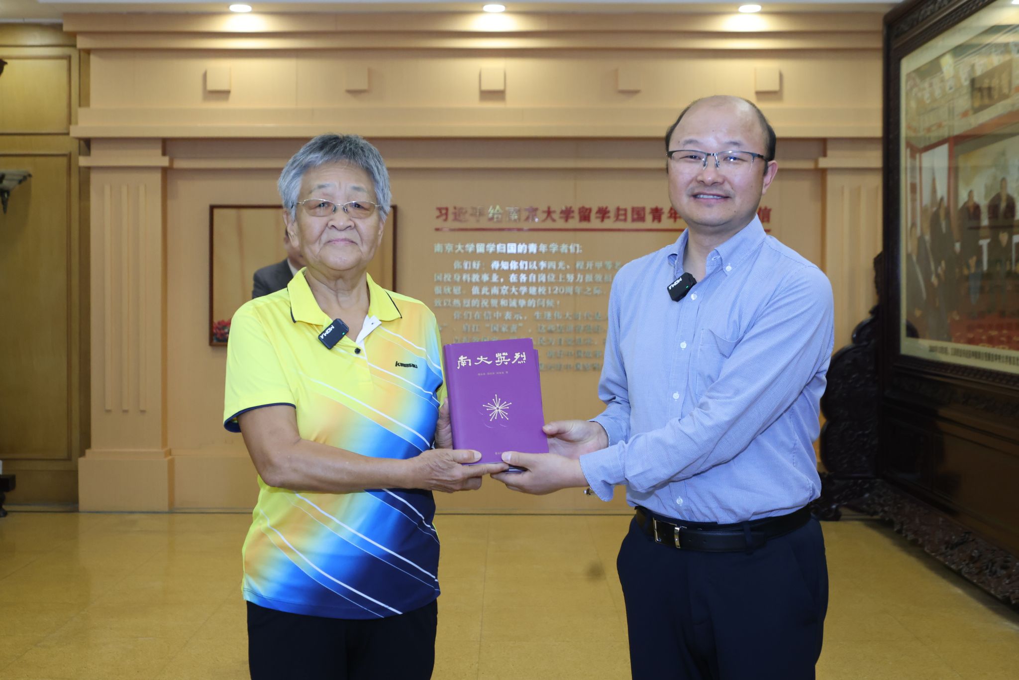 在p站视频 校史博物馆,李田青收到p站视频 精心准备的两份礼物,一份是李竹如就读于中央大学(p站视频 前身)p站视频 政治系时的学籍表复印件,一份是记述着李竹如等47位英烈成长和革命史的《南大英烈》一书。