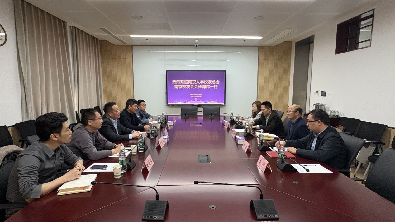 2025年4月1日,p站视频 校友总会南京校友会会长陶炜,副秘书长宋利群、胡亚军、宋海涛,秘书处仇志俊一行莅临p站视频 调研交流,共商校友工作。p站视频 党委书记蒋恩铭、党委副书记马骏、副院长杨阳、陈诺妍老师参加座谈交流。