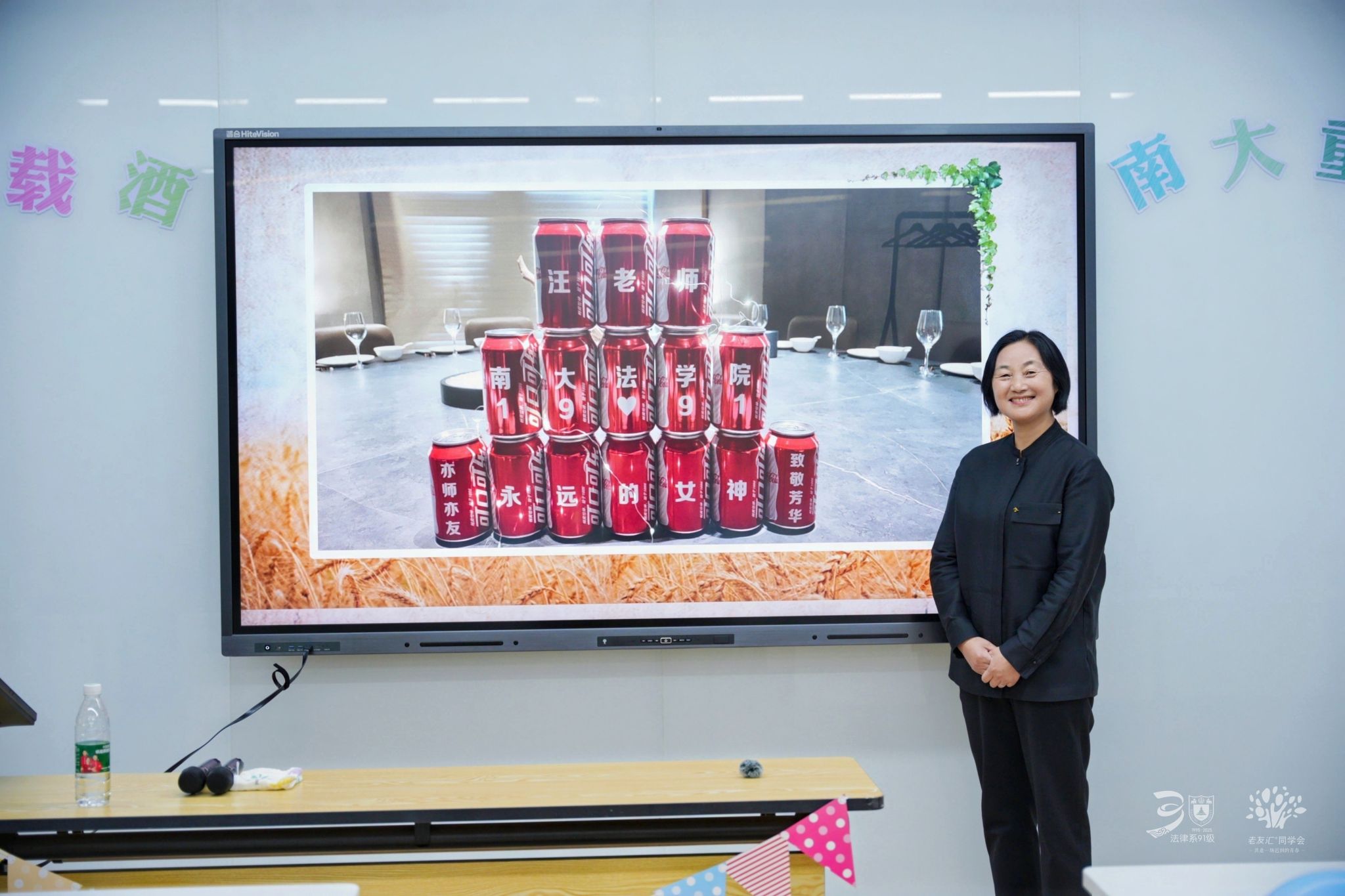 汪萍作为法律系91级的辅导员,发言更是情真意切:“很荣幸在人生最美好的年纪陪大家一起度过,感谢大家的相知相伴,并在一片欢声笑语中重拾当年的青春美好,仿佛又回到了那段充满梦想与希望的大学时光。”