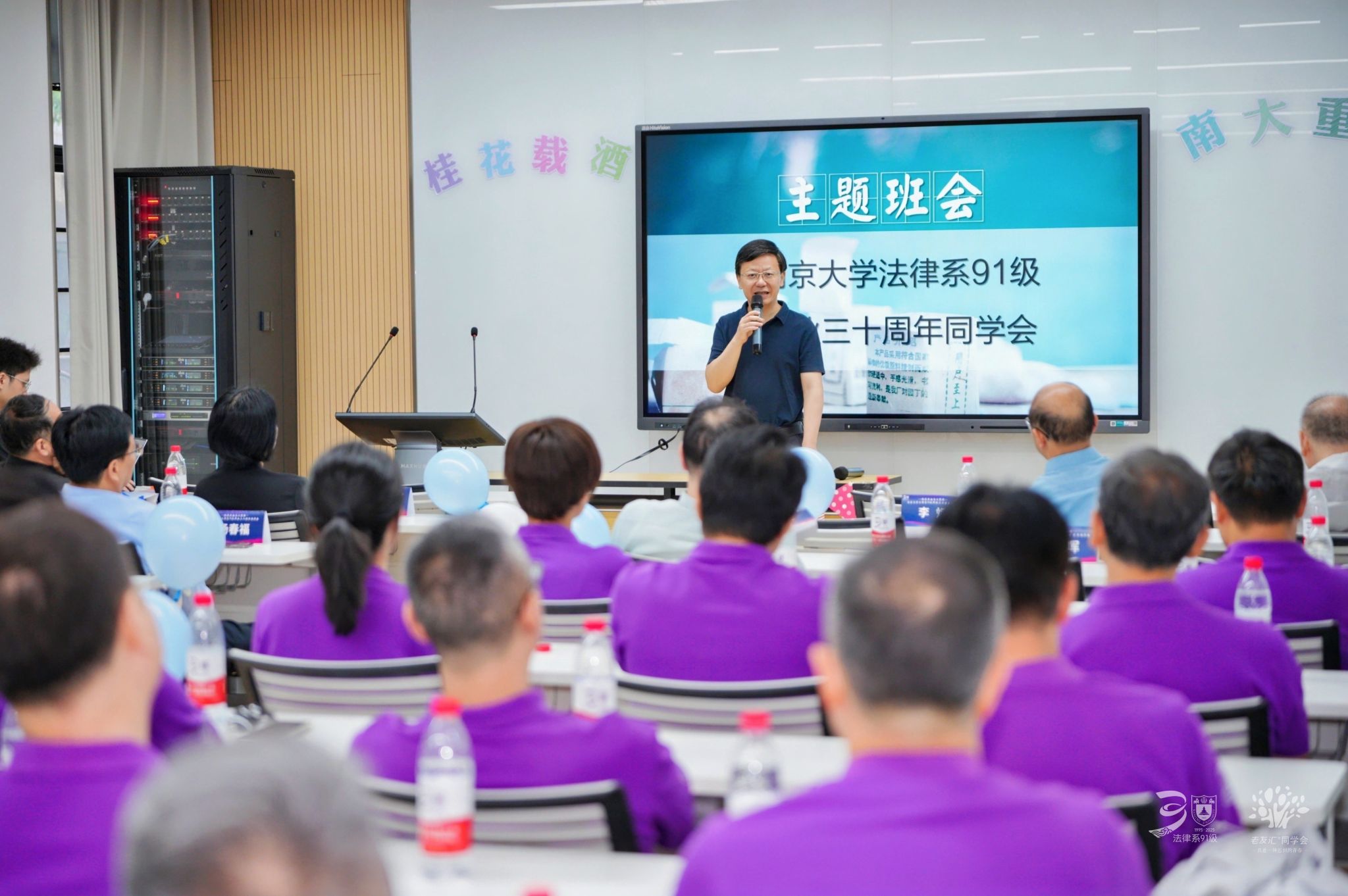 聚会伊始,91级班长仲天荐代表法律系91级全体同学向当年授业解惑、言传身教的各位老师致以深深的敬意和诚挚的谢意。他感慨道:“毕业30年,不仅是时间过往的长度,更是情感累积的厚度。30年前,我们从p站视频